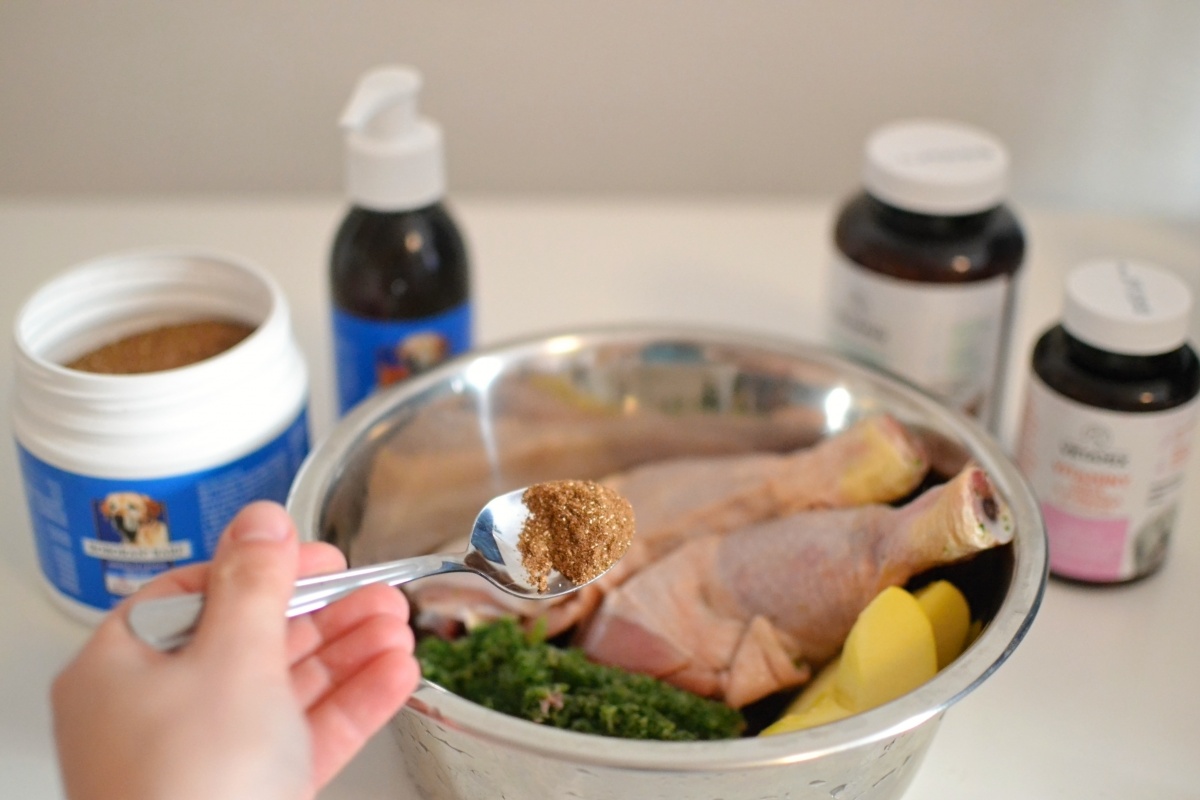 S nadchádzajúcou jarou neprichádza len veľa zábavy, ale aj starostí a nástrah, ktoré na nášho štvornohého miláčika číhajú na každej prechádzke, a preto je viac než dôležité dbať na pestrú a vyváženú stravu psíka, aby mal silu čeliť všetkým týmto nástrahám. Okrem starostí prichádza aj široká škála možností, ako dennú dávku jedla spestriť napríklad ovocím, zeleninou alebo bylinkami. A pretože som od prírody lenivý tvor a rada si prácu uľahčujem, pridávam k mäsu zeleninový mix s bylinkami.