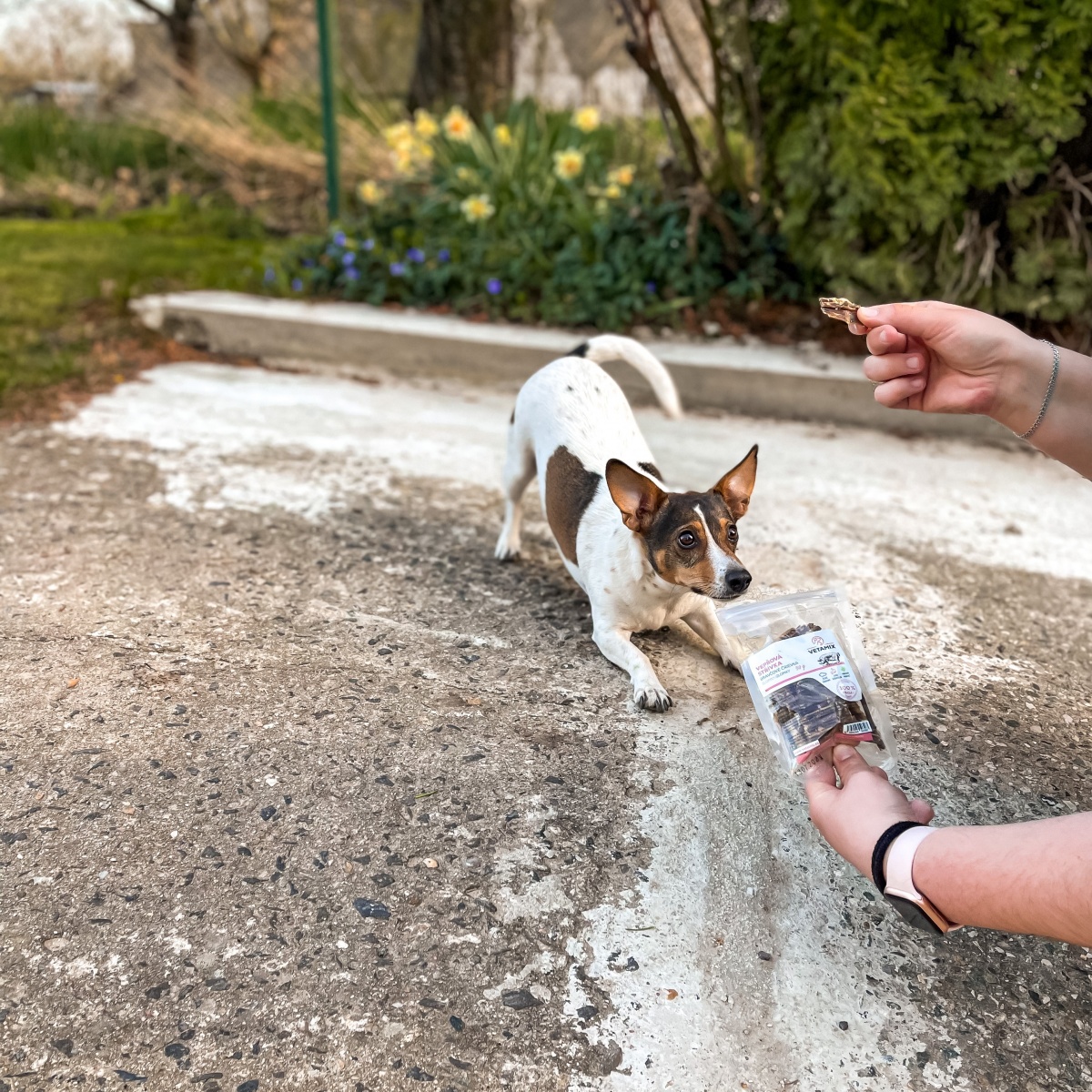 - Rozdiel je napríklad aj v starostlivosti o kĺby, pretože je jasné, že malý pes nemá takú veľkú hmotnosť, takže záťaž na kĺby nie je taká vysoká ako v prípade veľkých plemien. Ale aj tak sa tomu snažím u Ellie venovať pozornosť. Nabehá sa dosť vonku, po schodoch a dosť aj skáče za loptou. Takže už od malička, vlastne od šteniatka, používame výživu na kĺby od Veatmixu a všelijaké vitamíny, ktoré ponúkajú.