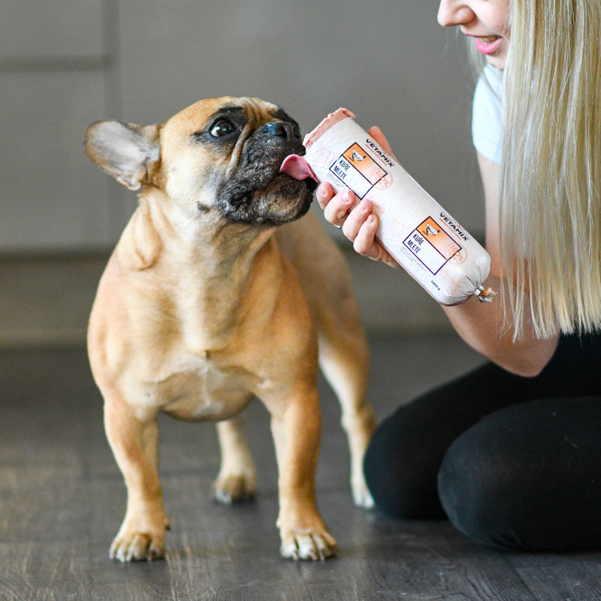 Pre mňa je najdôležitejšie, že jeden valček obsahuje vyvážený pomer mäsa, kostí a drobov, čo mi veľmi uľahčuje prácu. Stačí len vyklopiť do misky. A náš Mauglí sa z neho môže zblázniť.