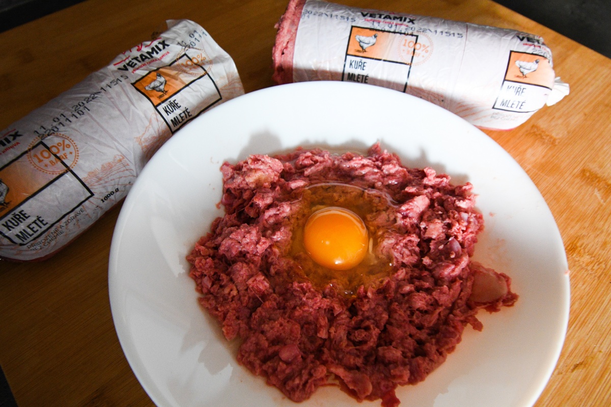 - KURA CELÉ MLETÉ vždy kombinujem s olejom, a to preto, že každý pes – aj jeho zažívanie – je individuálny a nie vždy môže Mauglímu sadnúť množstvo kostí v zmesi, tak aby sa nám neupchal, olej je istota. Pre radosť z farebnej misky pridávam vždy kúsok ovocia alebo zeleniny, napríklad lesná zmes ovocia je výbornou voľbou na kombinovanie. Vzhľadom na tomu, že KURA CELÉ MLETÉ je pre mňa najmä "BARF bez práce", často prílohu úplne vynechám.