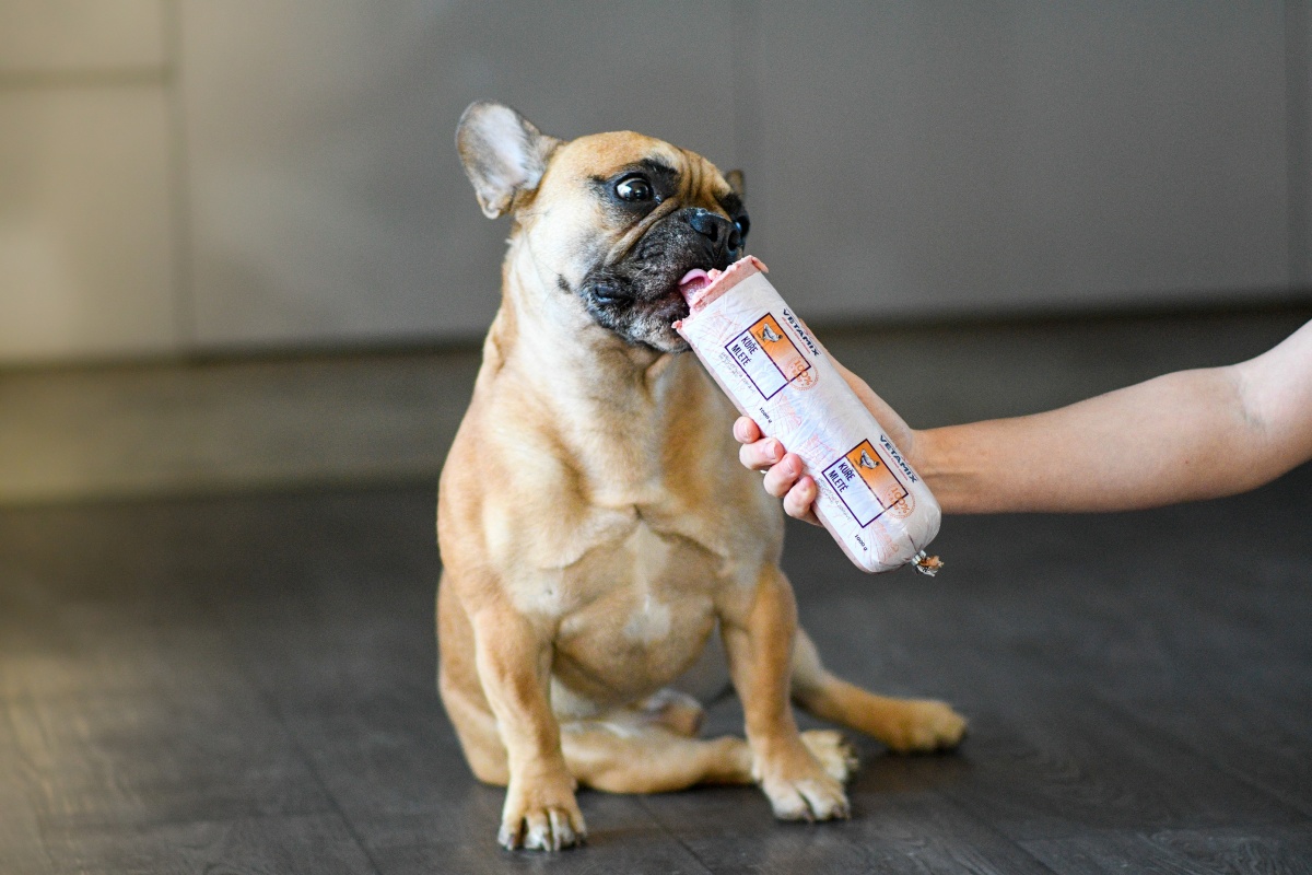 - Nielenže tento balík mäsa obsahuje správny pomer kŕmnej dávky pre psa – teda mäso, droby a kosti, ale tieto "valčekové" packy sú dokonale skladné, vždy sa do mrazničky zmestia, aj keď sa zdá, že sa tam už nemôže vojsť nič.