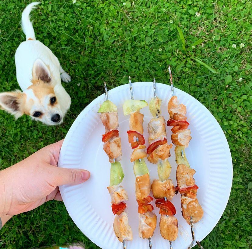 Vidíte? Fakt nič zložité v tom netreba hľadať. V pohode sme sa najedli aj my, aj moje psie slečny 😅 a všetci sme boli spokojní. Najskôr som im špíz držala a ony ho obhrýzali, ale potom som im všetko stiahla zo špízu do misky, aby sa pekne napapali.