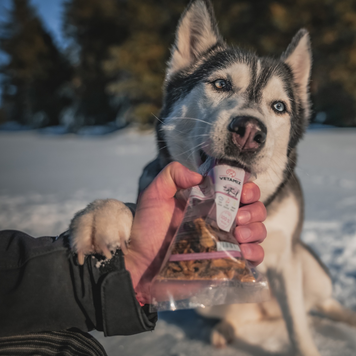 Vetamix prémiové maškrty z kvalitných prírodných surovín sú ideálnym doplnkom každodenného BARFovania.