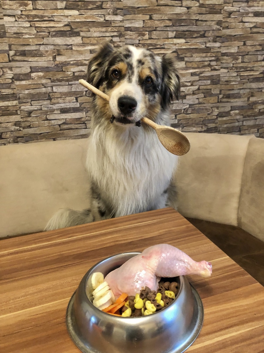 Každý z mojich psov má svoje preferencie a chute, v tom hlavnom sa ale zhodnú. Z ovocia je na prvom mieste jablko, hruška a banán, zo zeleniny je to prevažne mrkva, zeler, petržlen, listová zelenina a repa. Občas pridávam sušenú kelpu, lososový či pestrecový olej, vajíčko či tvaroh.